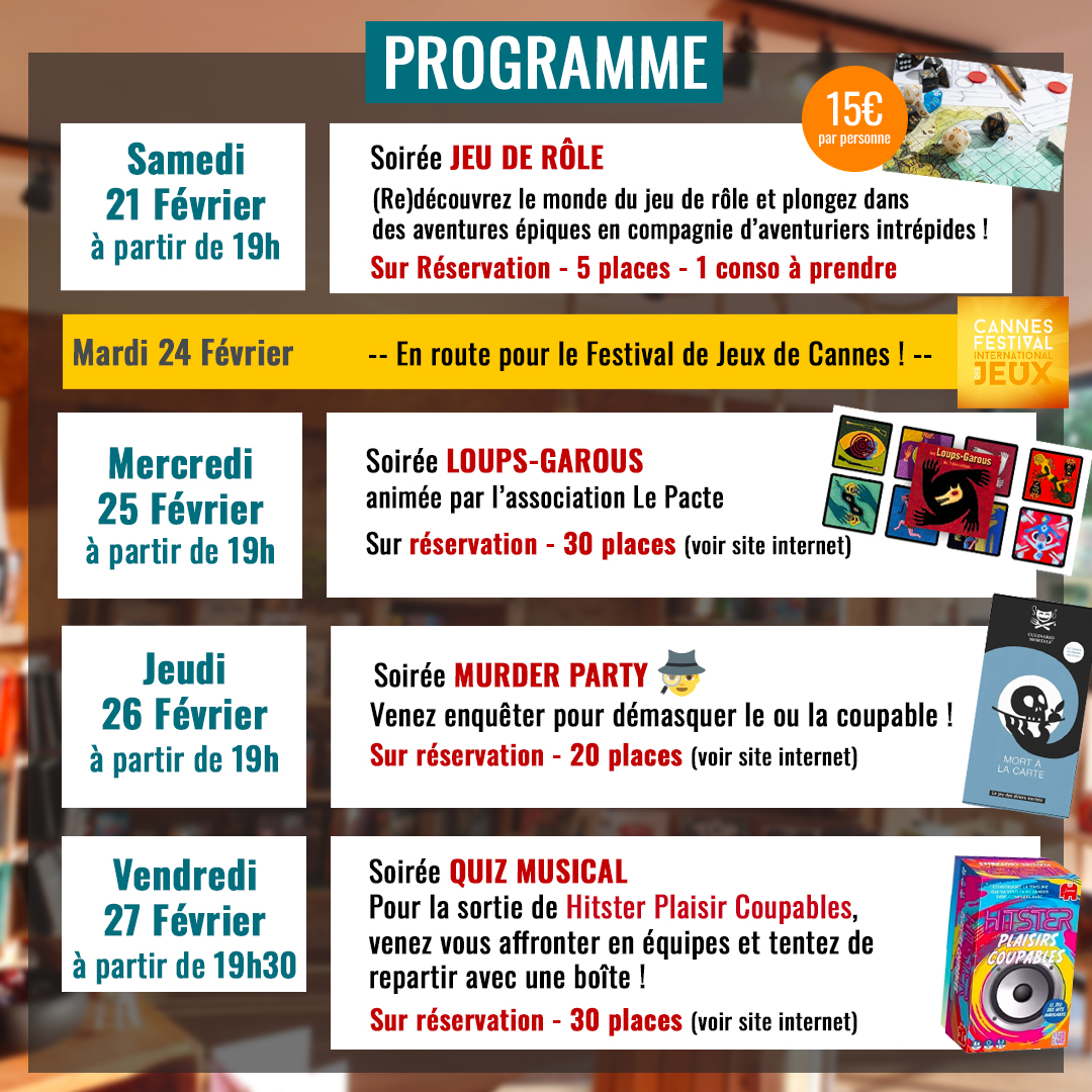 Le Drakkar c’est aussi des évènements toutes les semaines pour faire des rencontres et défier ses amis. Loups-Garous, Quizz Géant, jeu de rôle, découvertes avec des auteurs. N’attendez plus pour réserver votre place.