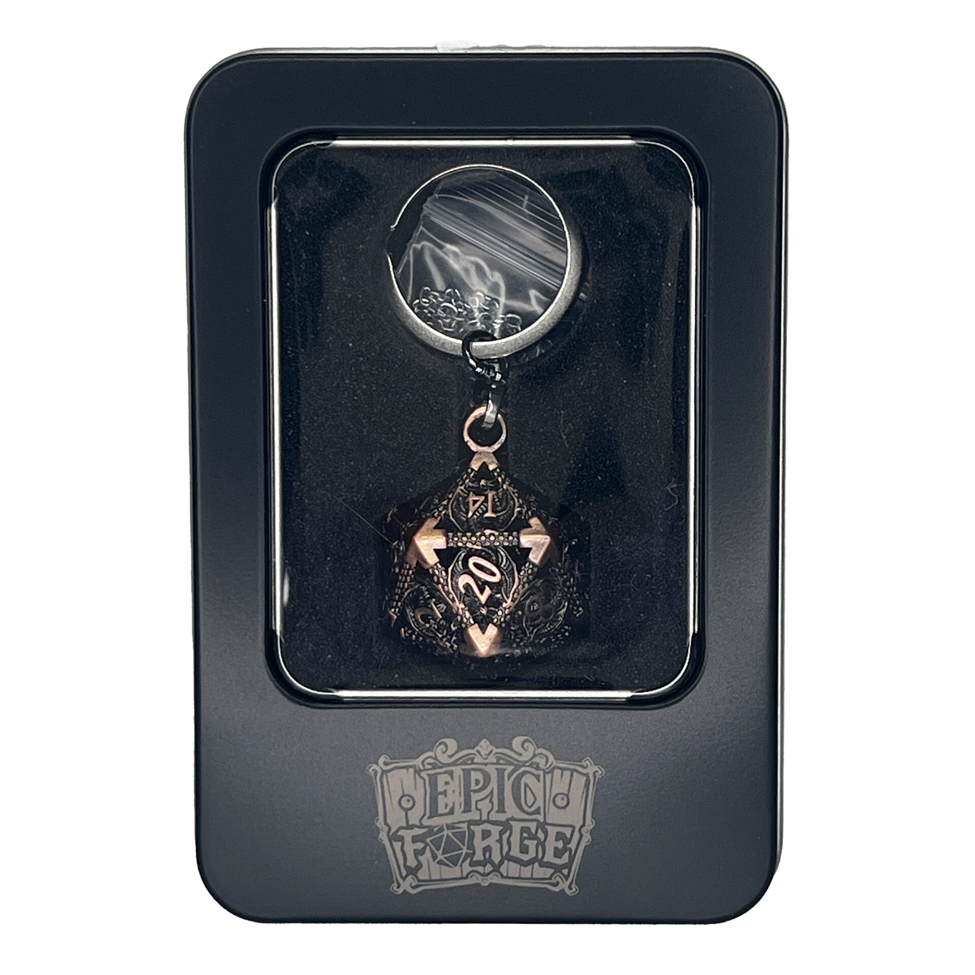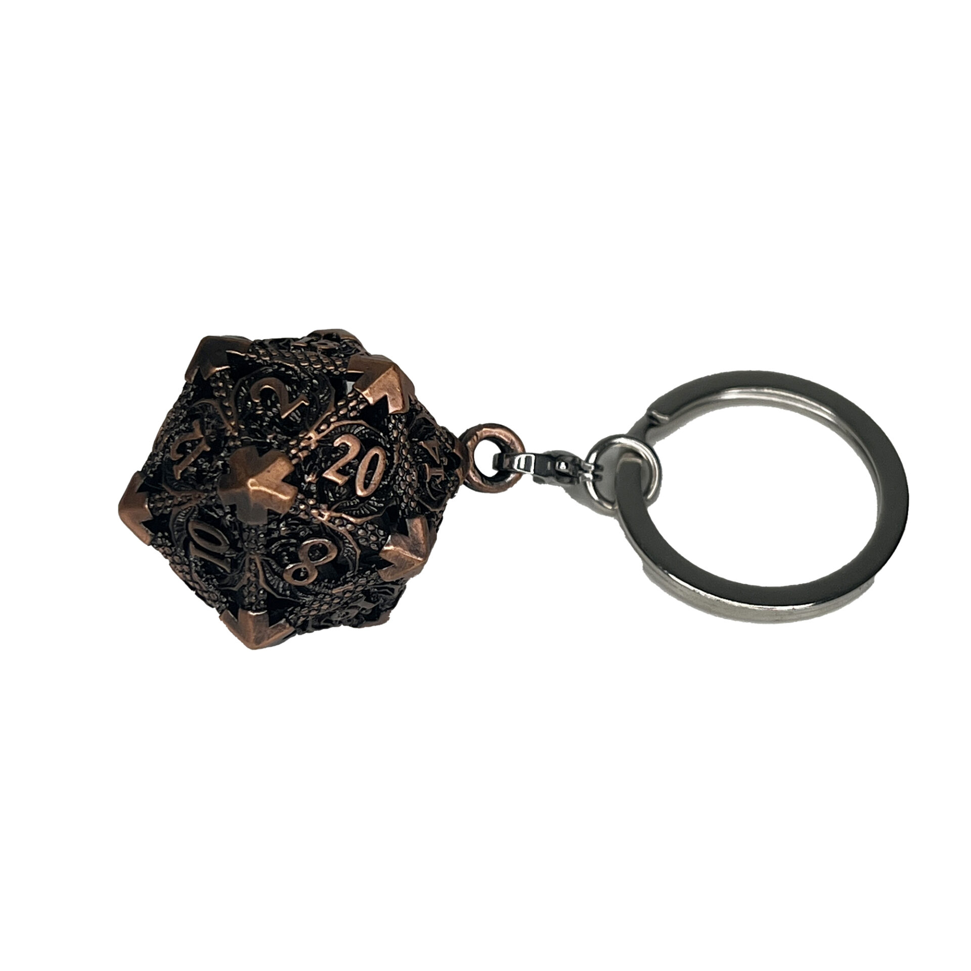 Porte clé D20 Rose Ancien – lot de 7 mini dés métal (5mm)